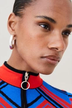 Set the tone for new-season styling in this sporty placement-print jacket. With a sporty round-pulled zip and high neckline, it nods to apres-ski looks from the 1970s and comes cut to a contemporary cropped finish with long, form-fitting sleeves.