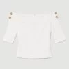Karen Millen Plunge V Neck Power Shoulder Slinky Knit Top