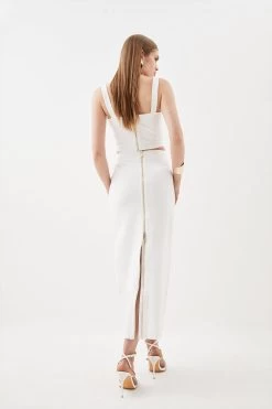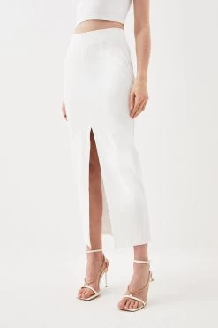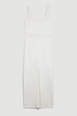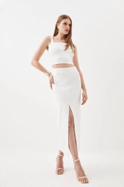 Karen Millen Ponte Strappy Crop Top And Split Front Skirt Jersey Set