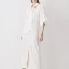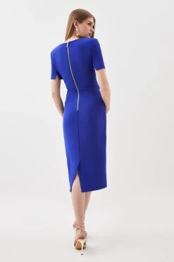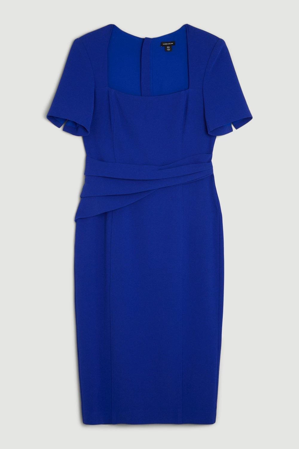 Versatile and form-fitting, this midi dress exudes undeniable sophistication. A ruched waistband flatters the sculpted silhouette, while a square neckline frames the profile. This piece is crafted with signature Triacetate fabric that is wrinkle resistant and holds its shape well, making an effortless choice for both everyday and occasion ensembles.