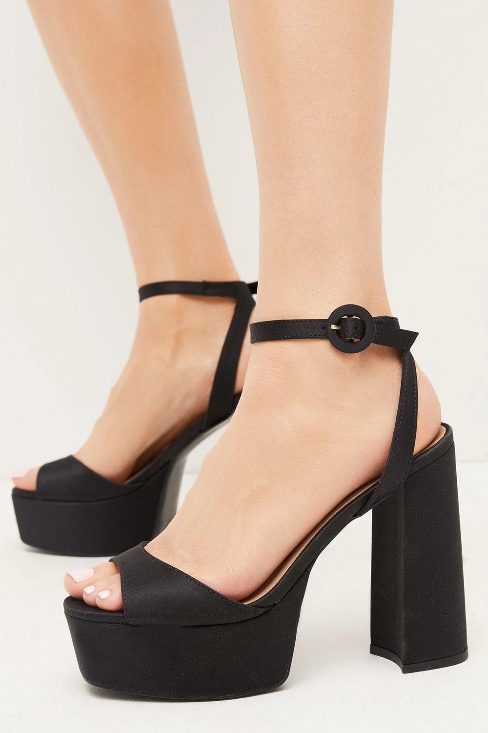 Crafted in a luxurious combination of satin and leather, these sleek heels promise to elevate party ensembles to the next level. A chunky sole and platform heel allow this pair to be styled with everything from floaty maxi dresses to a form-hugging mini dress.
