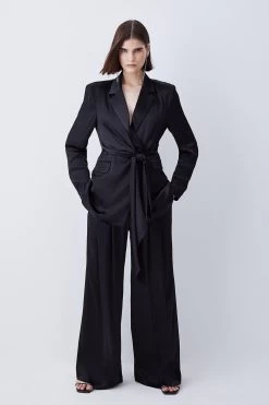 Suitable for both work and weekend, these trousers effortlessly combine cool and casual. Satin fabric provides luxe appeal, while a high waist and wide-leg cut provides a flattering fit.