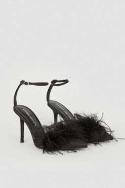 Infuse party-ready flair into your after-dark ensemble with these feather-trimmed pointed heels. The addition of fanciful feathers make these shoes truly worthy of the spotlight, while satin fabric and a diamante-detailed clasp add a touch of glamour.