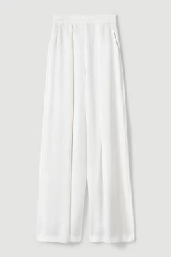Extreme proportions make for statement-making tailoring – as demonstrated by these wide-leg tailored trousers. Composed from lustrous ivory satin crepe that scintillates under the light, this pair come tailored with a high-rise waist that defines the silhouette before falling to extra wide legs with inverted pleats. Showcase your penchant for high-impact coordination with the matching shirt.