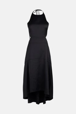Main: 100% Polyester. Lining:100% polyester. Dry Clean Only. Model wears UK size 10.Model Height :5’9 Size 10 centre back length: 140cm
