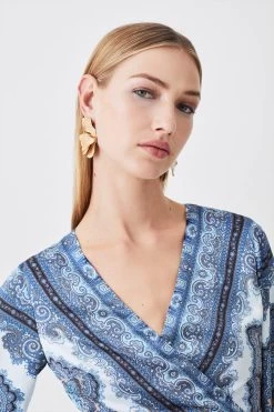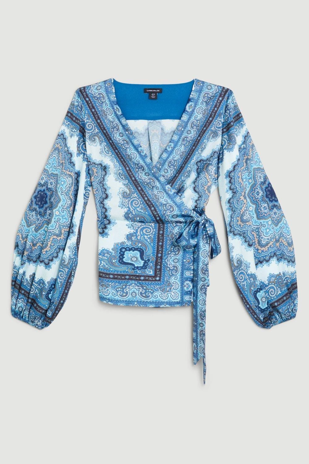 Karen Millen Scarf Printed Hammered Satin Woven Wrap Top