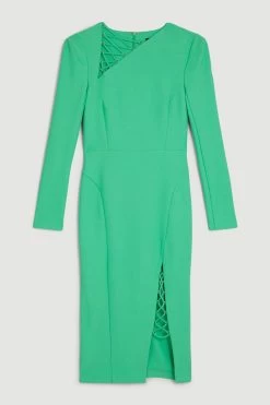 Detailed with a criss-cross lace up feature, this dress promises to turn heads. Signature scuba crepe material creates a flattering, streamlined silhouette, while cut-out details add a sultry touch. Style this piece with heels and a clutch bag for a sophisticated after-dark look.