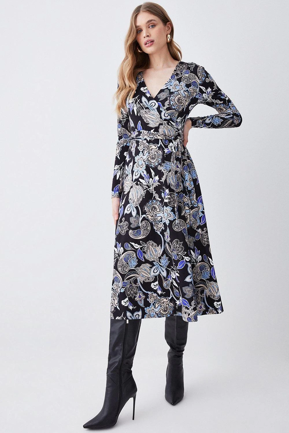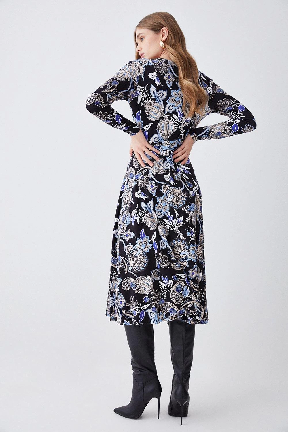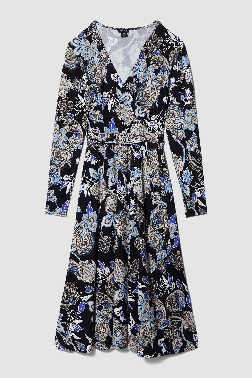 97% Viscose 3% Elastane. Wash with similar colours. Model wears UK 8 US 4. Model height approx 5″10.