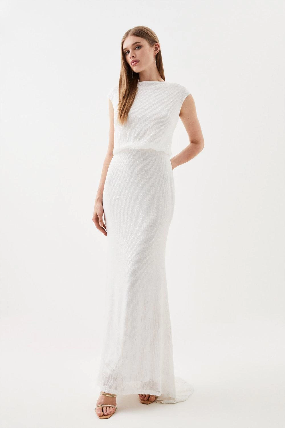 Karen Millen Sequin Short Sleeve Maxi Dress