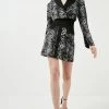 97% Recycled polyester 3%elastane. Contrast: 100% polyester. Dry clean only, store flat. Model wears a size small. Approx length 100cm