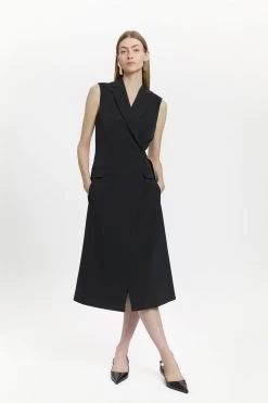 Karen Millen Signature Technical Stretch Tailored Buckle Midi Dress