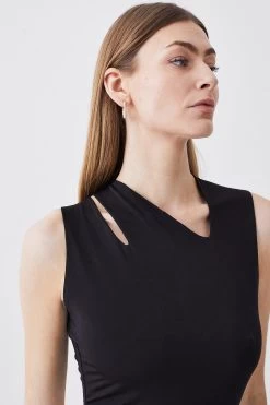 68% Viscose 27% Polyester 5% Elastane Gentle machine wash at 30 with similar colours. Model Height 5”10 – Model wears a UK 8/US Size 6.