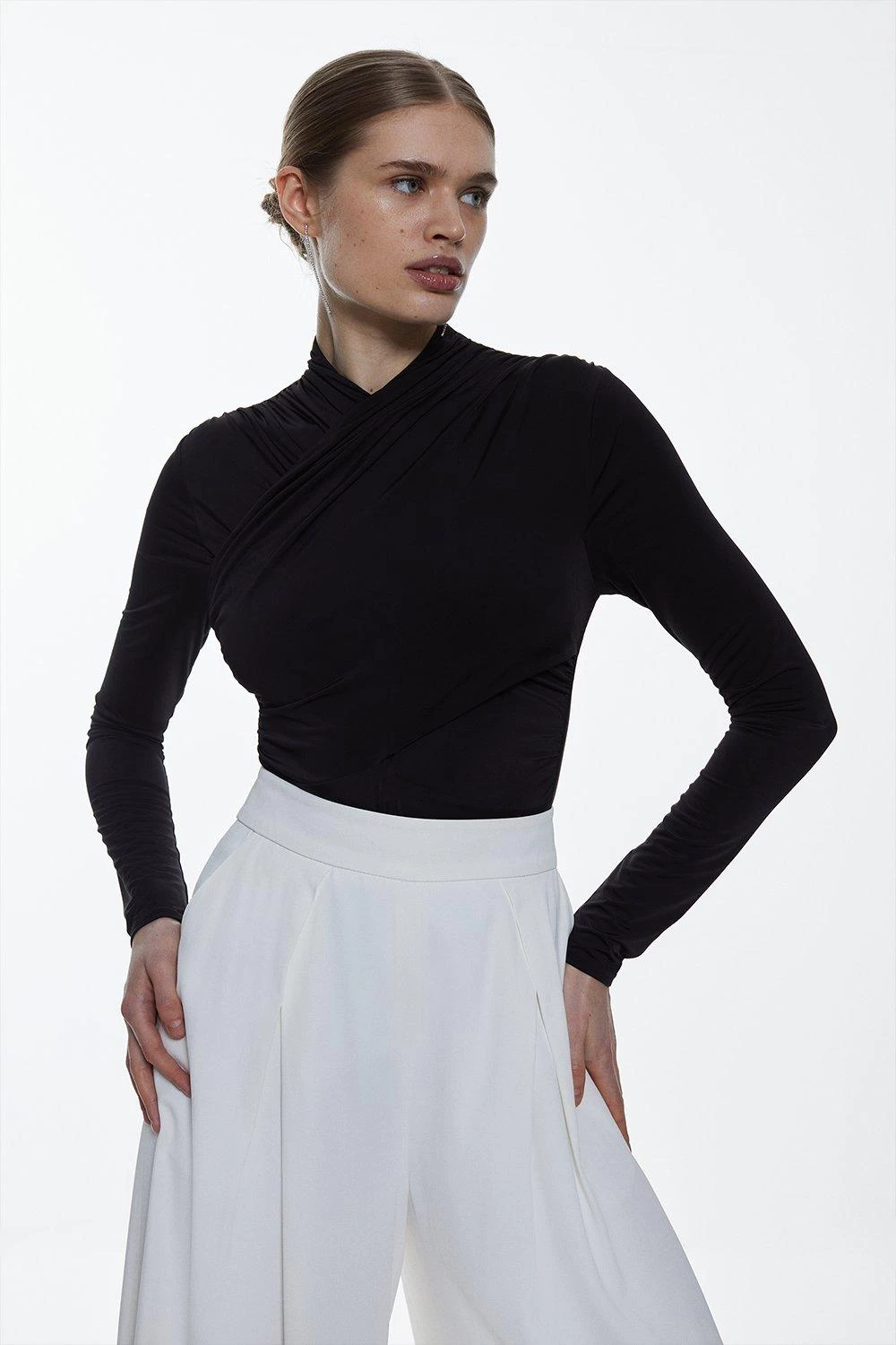 Karen Millen Slinky Jersey Long Sleeve Halterneck Bodysuit
