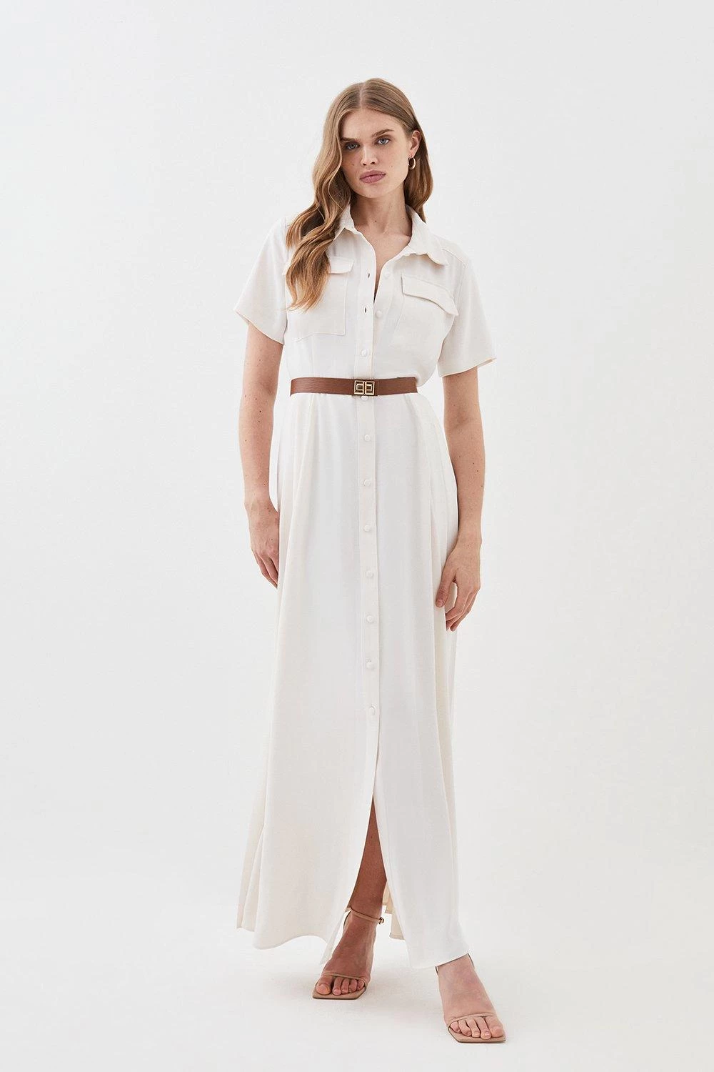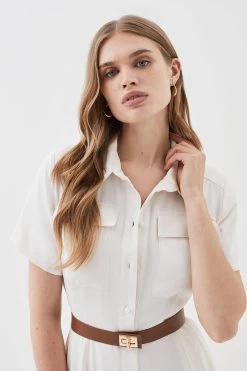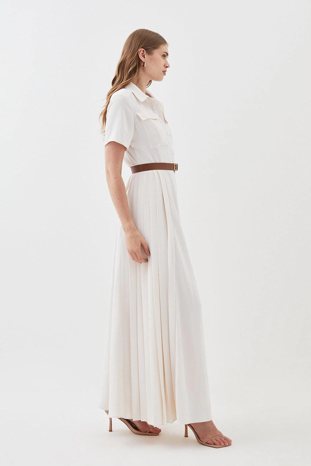 Karen Millen Soft Tailored Pleat Panel Midi Shirt Dress