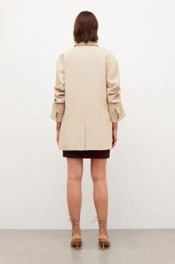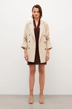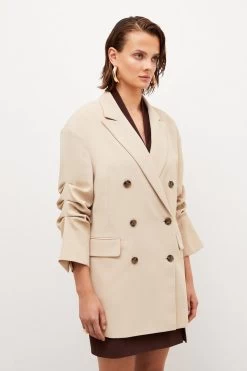 Play with proportions in this on-trend tailored jacket. Crafted from soft twill for a laid-back sense of structure, its oversized fit and longline design make it a must-have piece for those with an eye for current trends. It fastens with classic double-breasted button closures, offsetting flap pockets and classic notched lapels for that ultra-covetable, borrowed-from-the-boys feel.