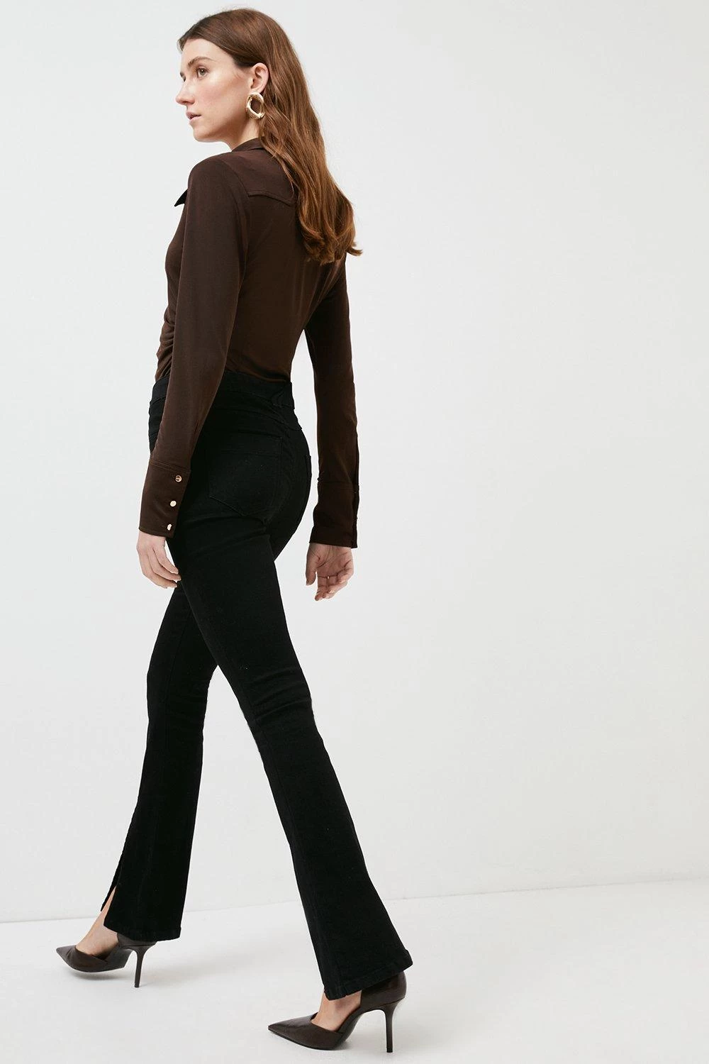 Imbued with 1970s appeal, these indigo jeans are defined by their kick flare fit and sultry hem splits. They show off a flattering high-rise waistline and classic five-pocket design for endless easy styling potential.