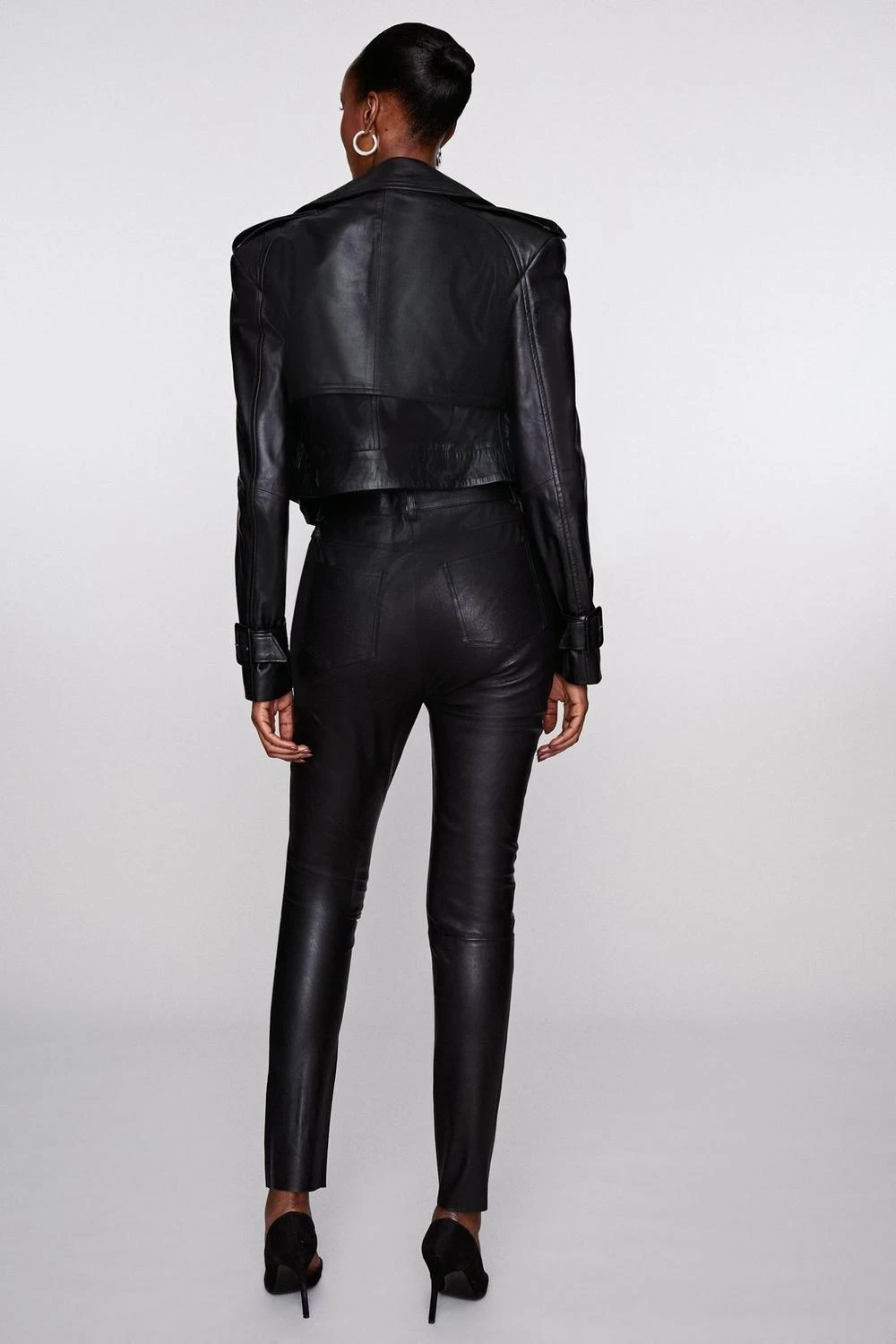 Crafted using premium leather,, these jeans are truly sumptuous. Feeling like a second skin when worn, the figure is coated and enhanced in luxury. Emphasising the waist with an iconic high-rise style, this pair is finished with a glossy metal closure and stitching that highlights all the right places.