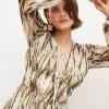 65% responsibly sourced viscose. 35% polyamide. Wash with similar colours. Model wears UK Small. Size S centre back length approx 90cm.