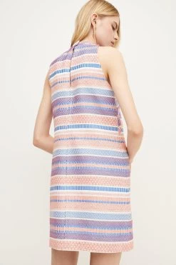 Candy-coloured stripes lend this alluring shift dress a beautifully beachy feel. Made for balmy days, its features a high neckline and simple, fuss-free silhouette that flatters any figure. Catch the sun thanks to the sleek, sleeveless fit.