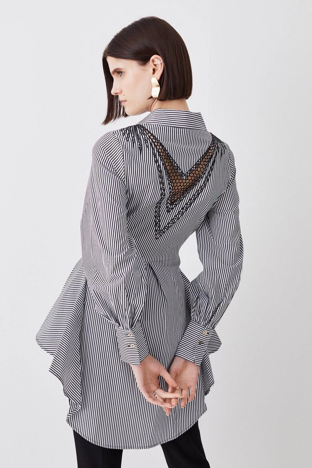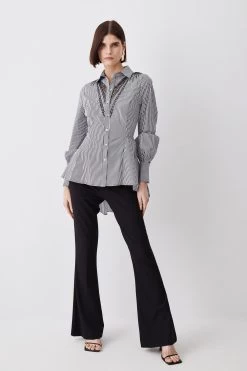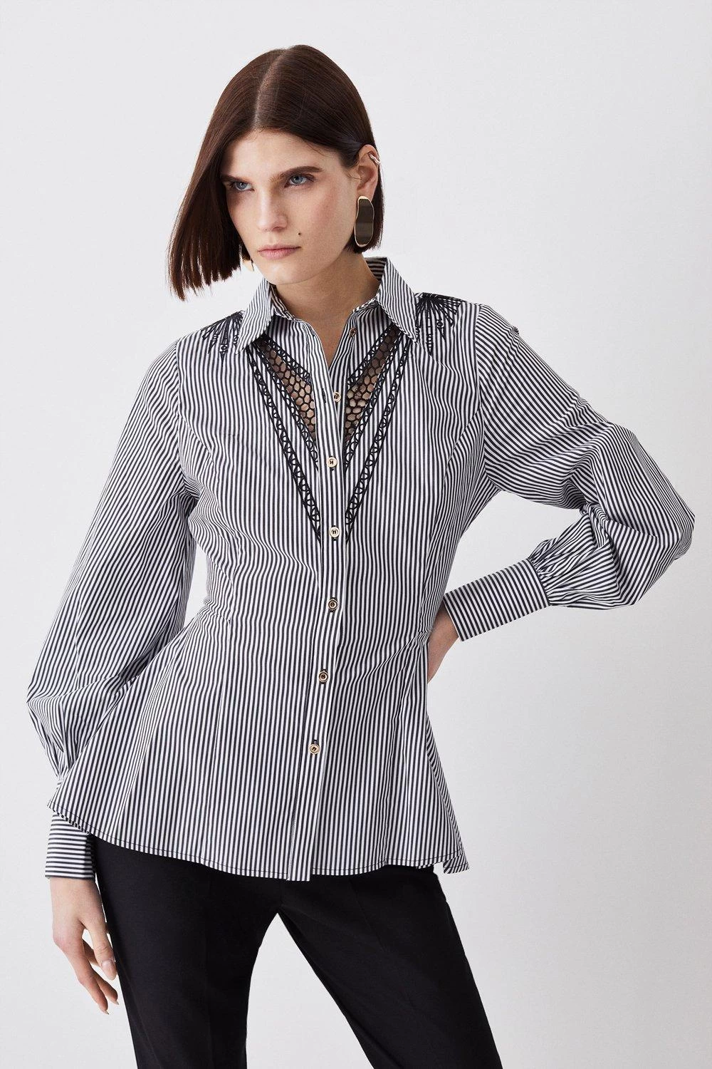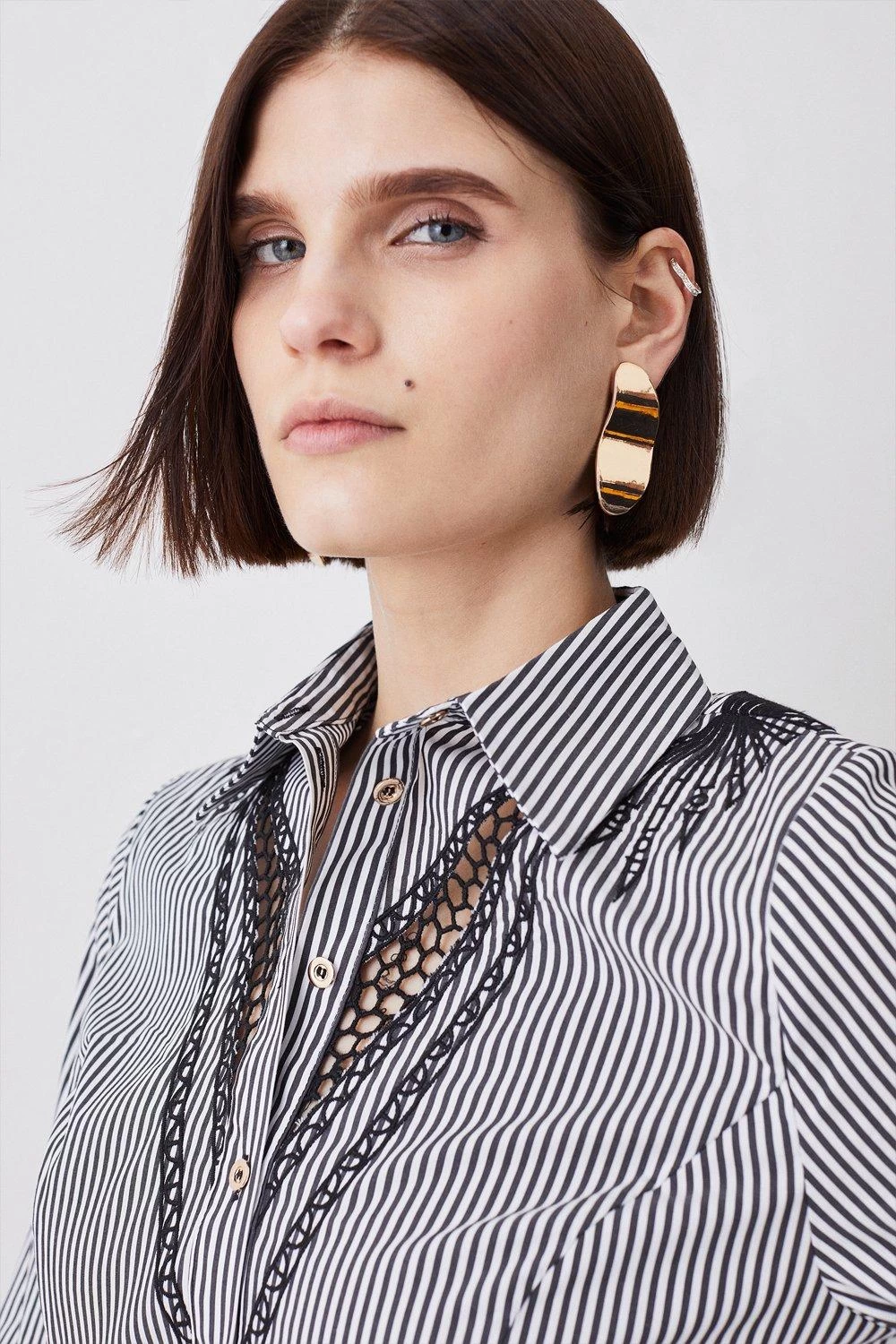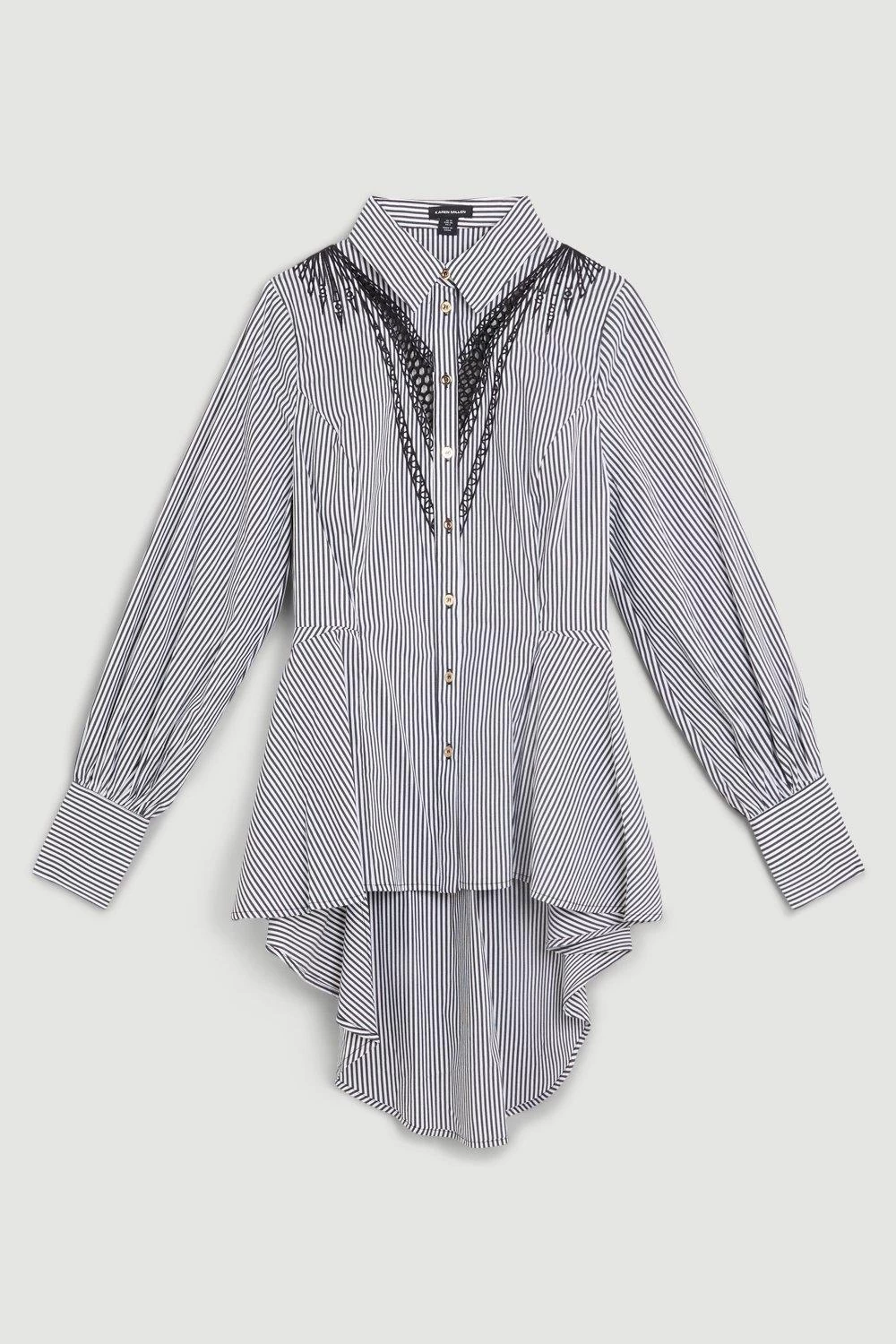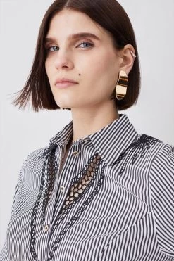 Karen Millen Striped Cotton Cutwork Woven Shirt