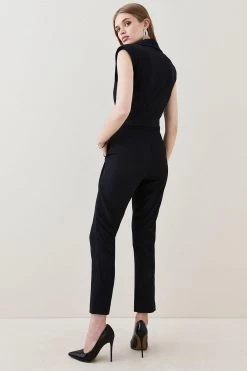 Power dressing is reimagined with modern majesty for this timeless jumpsuit. Tailored with a revered focus on form, it nods to waistcoat design with a single-breasted front – updated with a strong shoulder silhouette.