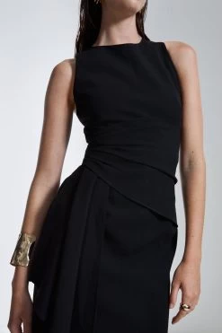 Meticulously draped to create a flattering and feminine fit, this midi dress exudes an elegant aesthetic. Designed with signature structured crepe fabric, this piece has a smooth and polished appearance. Pair this dress with heels and a co-ordinating fascinator for a standout occasion ensemble.