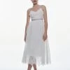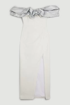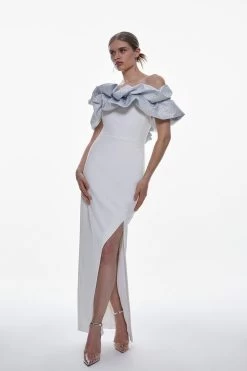 Karen Millen Structured Crepe Jacquard Ruffle Bardot Maxi Dress