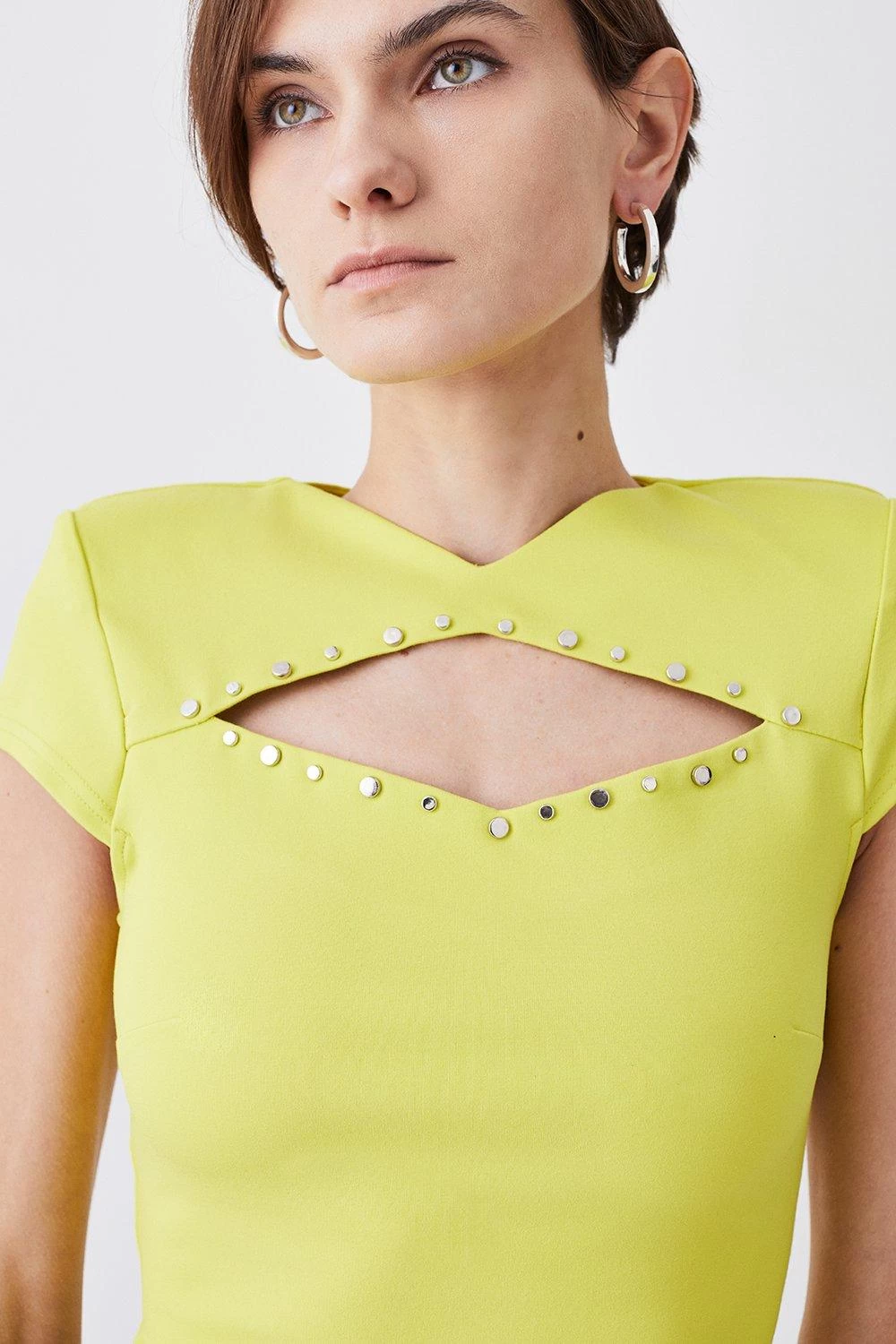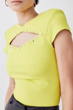 Karen Millen Stud Detail Cut Out Ponte Jersey Top