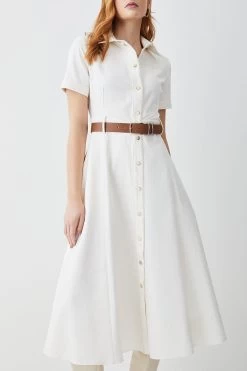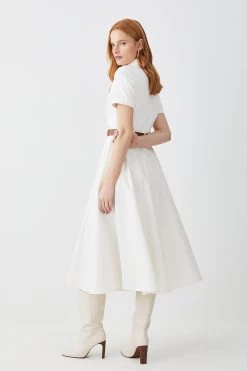Main: 98% Cotton, 2% Elastane. Dry clean only. Model wears UK 8/US 4. Model height: 5″9. Length measurement: 124cm.