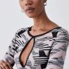 97% Recycled Polyester 3% Elastane. Dry Clean Only. Model wears UK Small. Small centre back length approx 125cm.