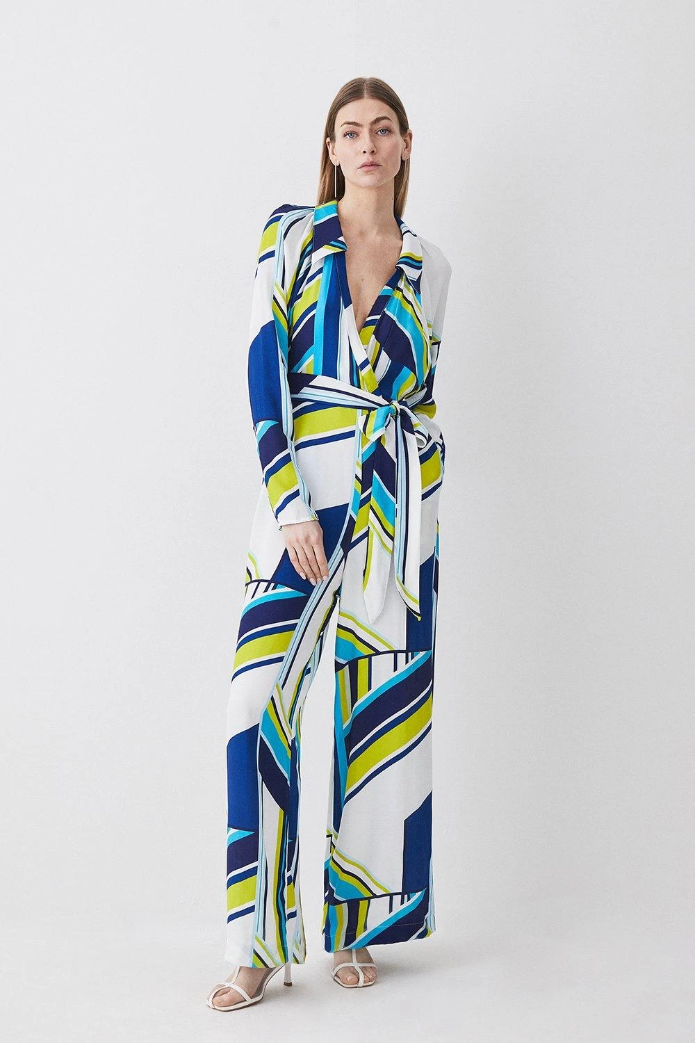 Karen Millen Tall Bold Stripe Belted Woven Jumpsuit