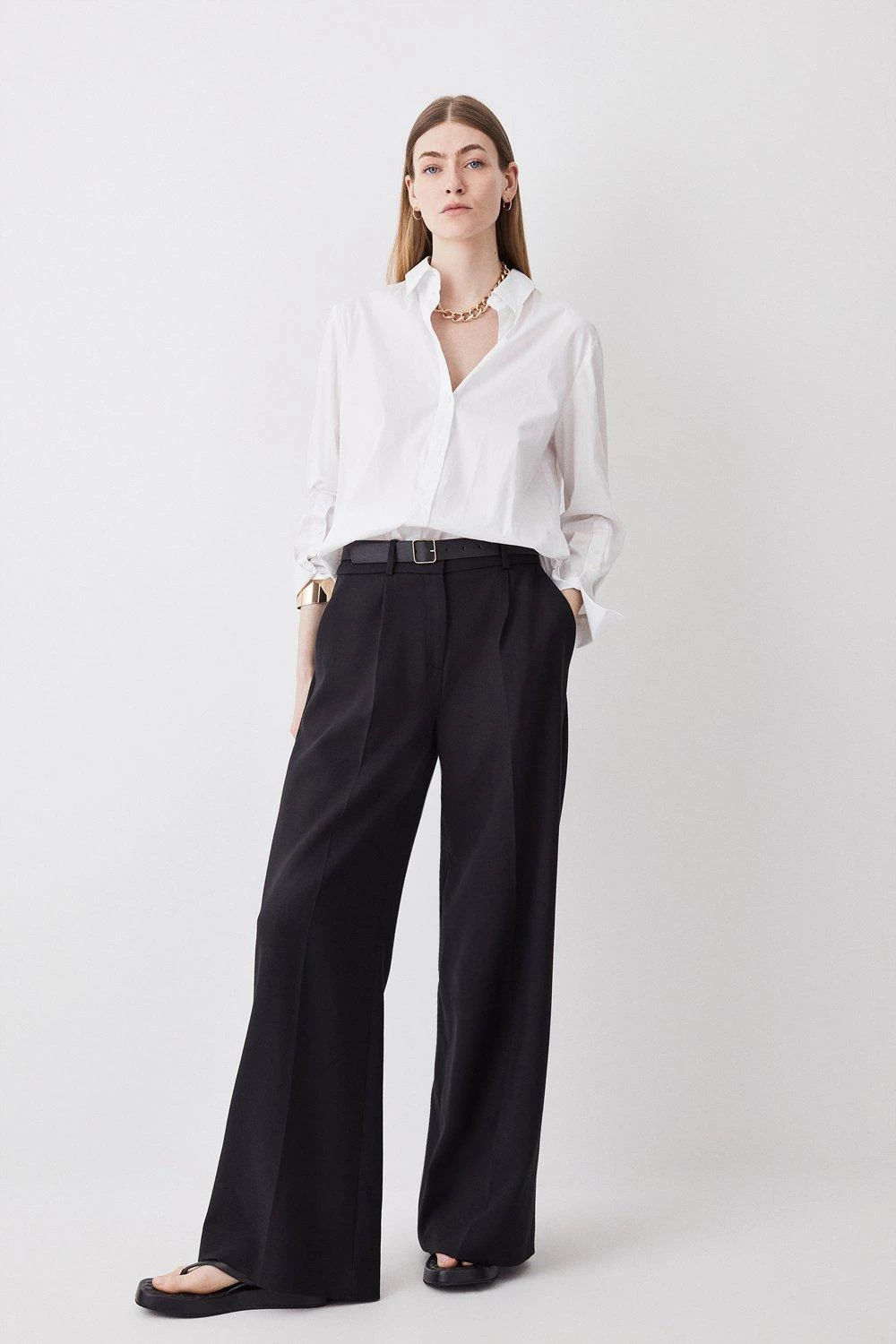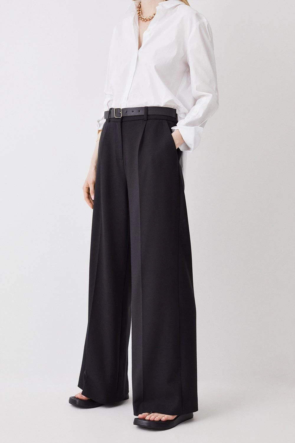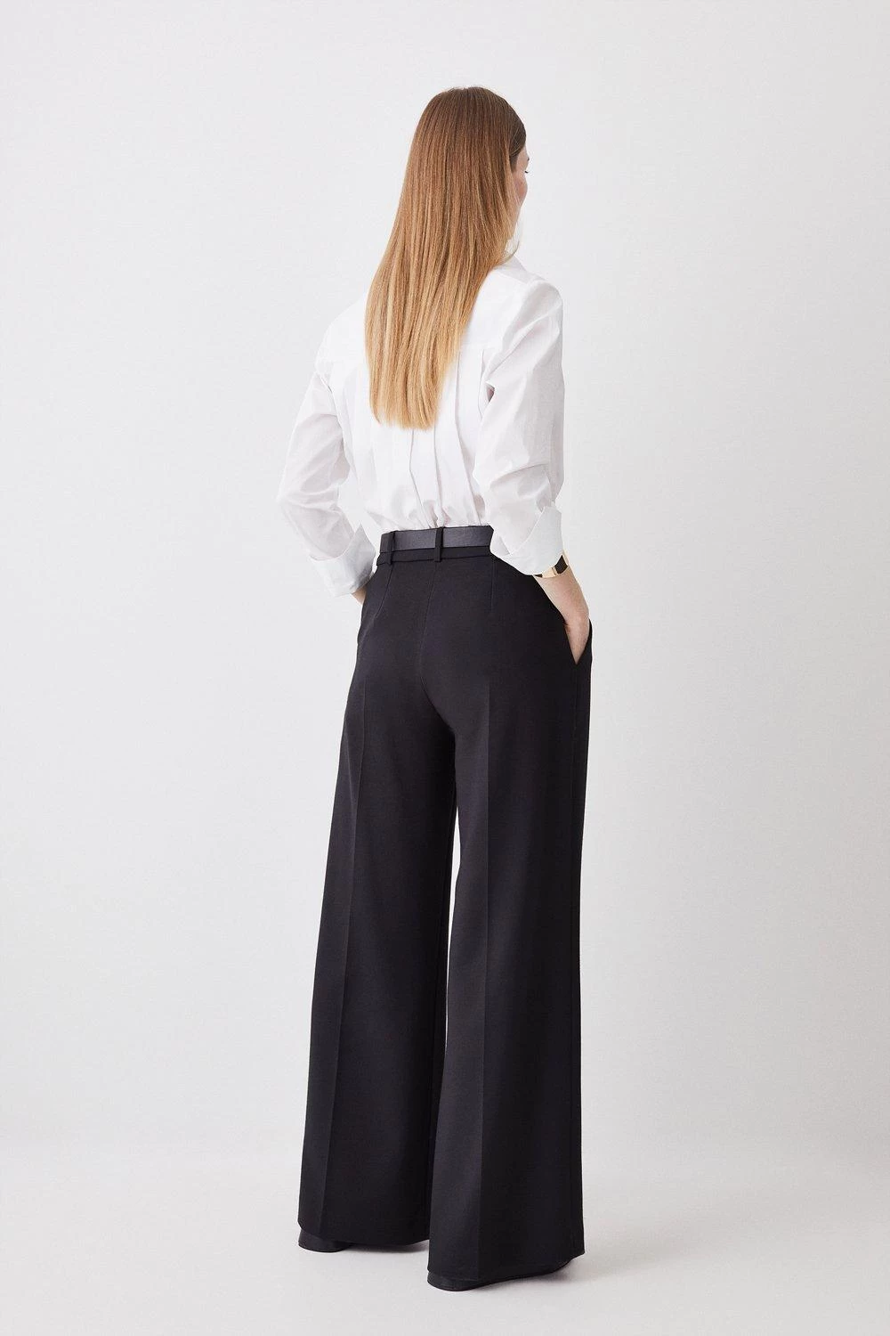 Karen Millen Tall Compact Stretch Belted Wide Leg Trouser