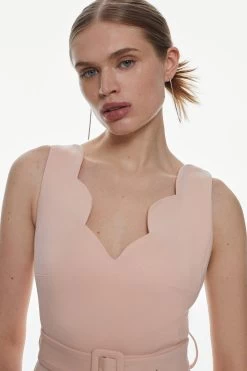 Karen Millen Tall Compact Stretch Scallop Detail Midi Dress