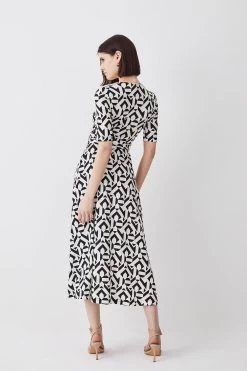 Karen Millen Tall Half Sleeve Geometric Printed Jersey Wrap Midi Dress