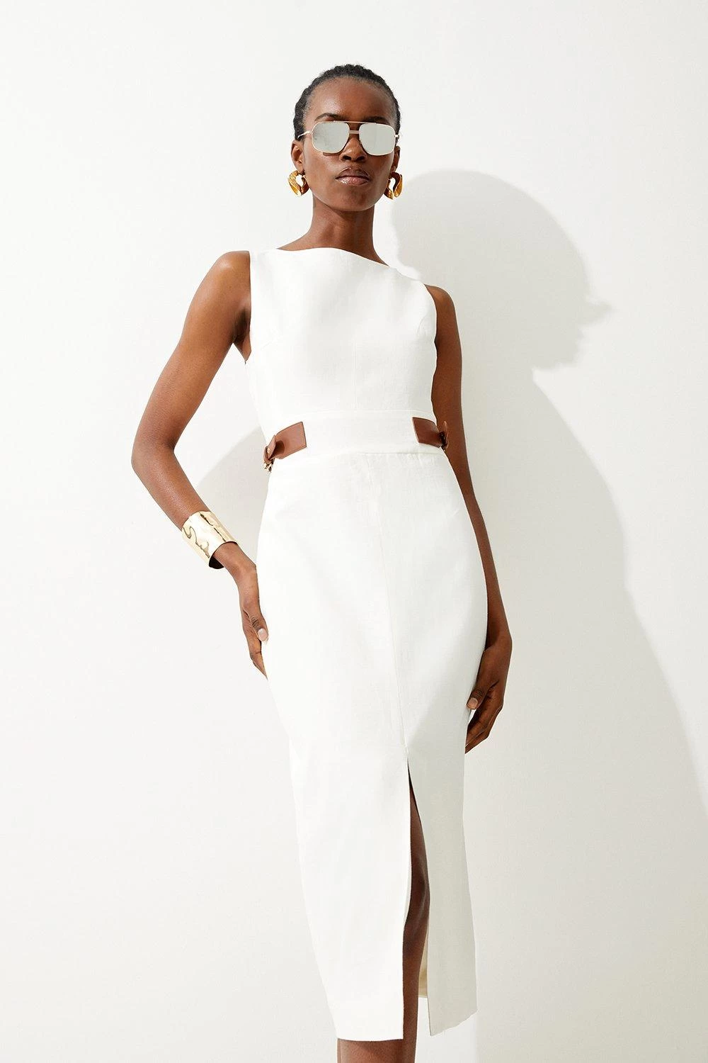 This sleek dress promises to deliver sophistication to every warm-weather event. Crafted from luxurious linen, this piece has a lightweight and breathable feel, making it an instant summer staple. Side buckle details add dimension to the silhouette.