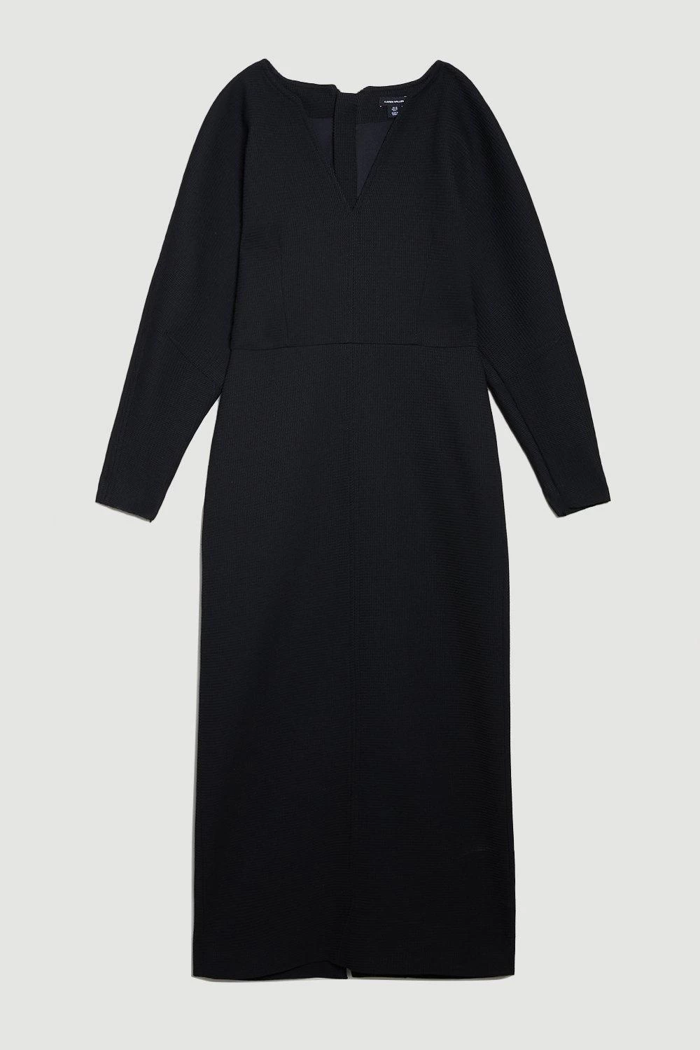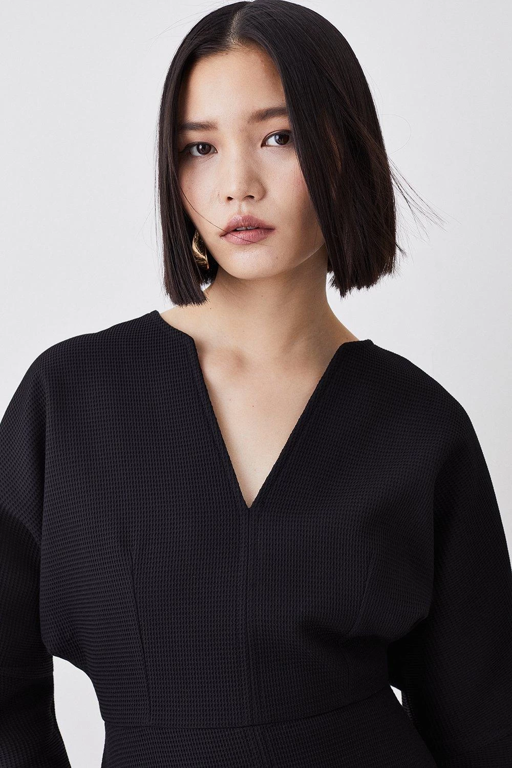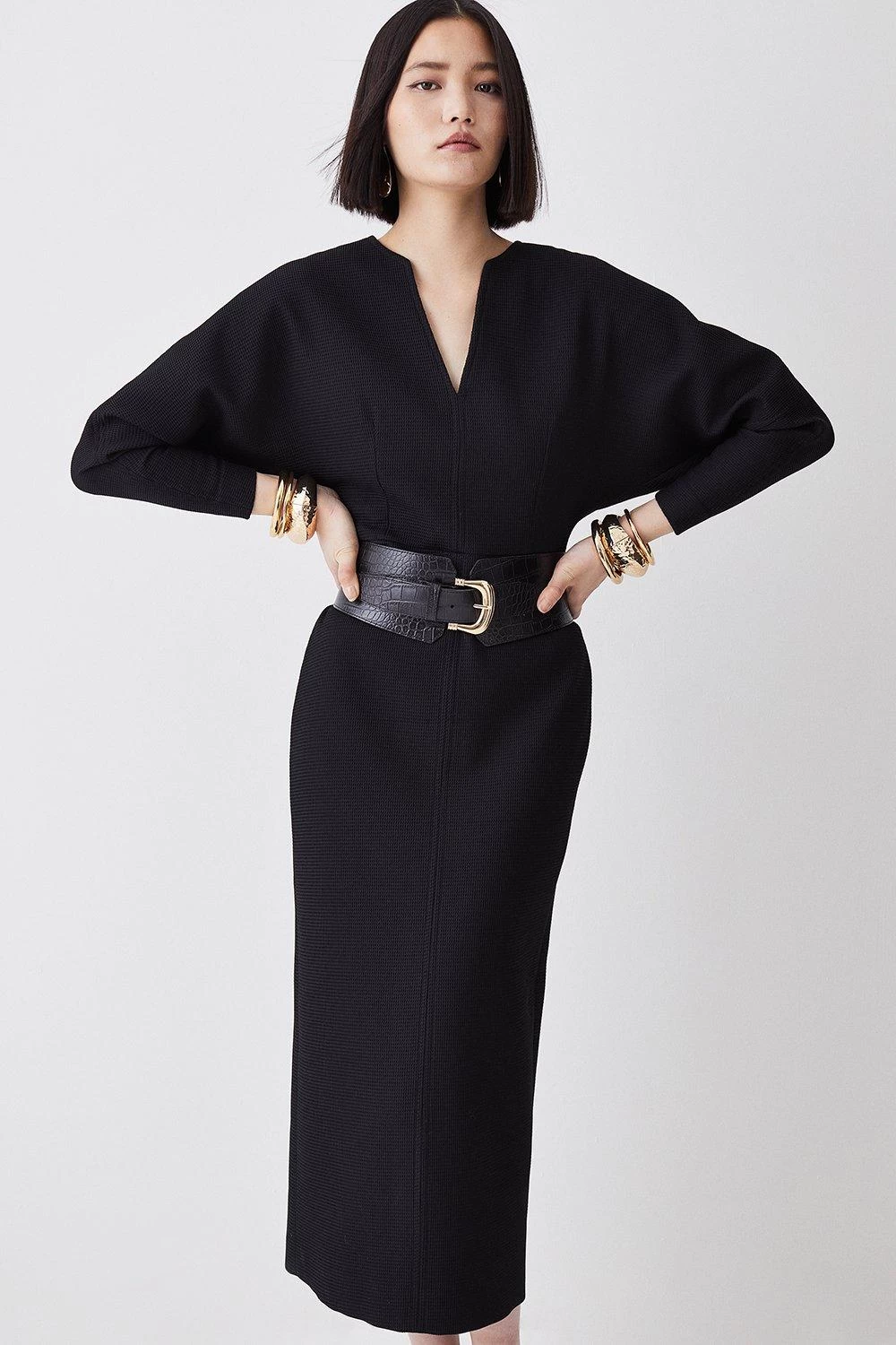 Incorporate powerful proportions into your work-to-weekend rotation with this sophisticated midi dress. Batwing sleeves add a dose of drama to this classic piece, while a notch neckline and A-line skirt lend timeless appeal. Accessorise with a statement belt to sculpt the silhouette.