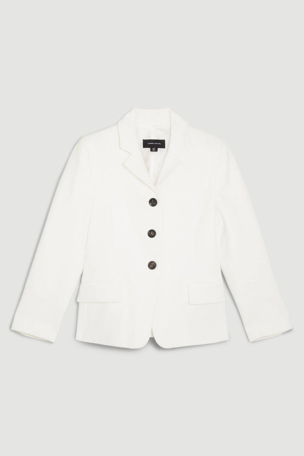 A reimagined classic, this tailored blazer exudes endless sophistication. Notched lapels and a single-breasted design create a sleek aesthetic, further emphasised by signature compact stretch fabric. Style this piece with a blouse and leather trousers for an impactful look.