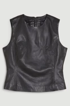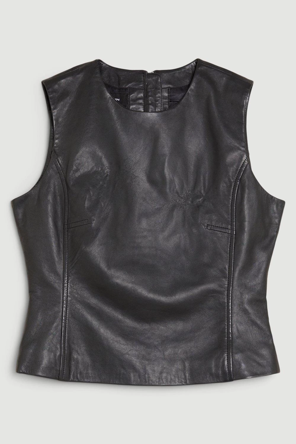 This contemporary shell top is crafted with sumptuous leather, promising to elevate any ensemble. A washed effect adds considered edge to this piece, while a round neckline adds classic appeal.