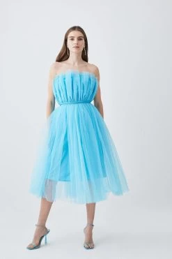 Combining femininity and glamour with effortless ease, this extravagant midi skirt is crafted with sweeping tulle fabric which flares down below the knees. Style this piece with the co-ordinating top for a truly showstopping ensemble.