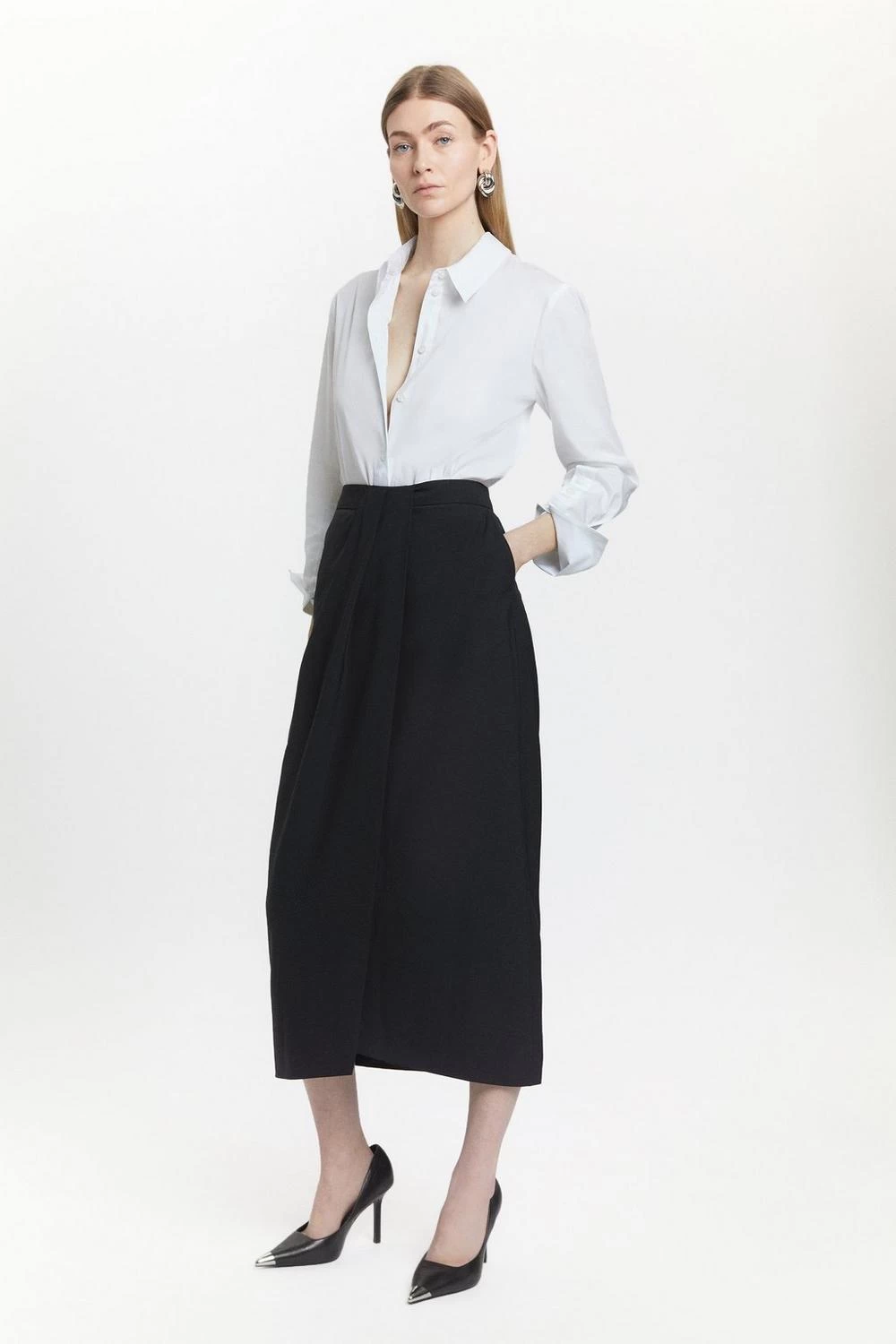 Karen Millen Wool Blend Wrap Detail Midi Skirt